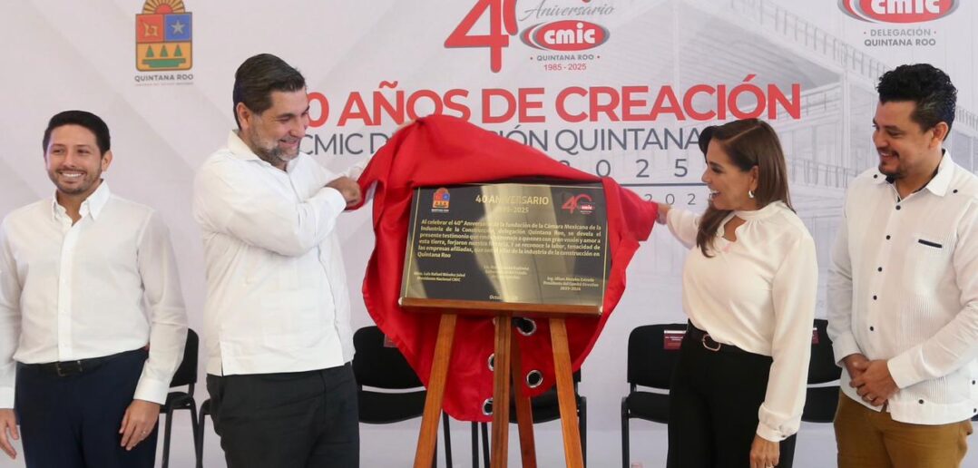 Chetumal.- La Cámara Nacional de la Industria de la Construcción (CMIC), Delegación Quintana Roo, celebró su 40° aniversario de fundación, en un acto en el que la gobernadora Mara Lezama Espinosa recibió un reconocimiento por su respaldo al gremio y su impulso a la infraestructura para el bienestar social.